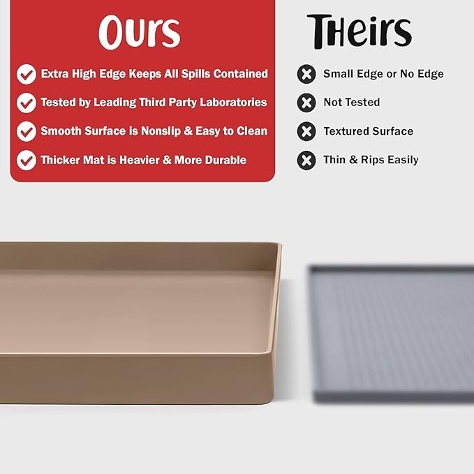 DogBuddy Non-Slip Silicone Food Mat for Dogs (XXL: 32" x 24", Taupe) - Waterproof, Nonslip Dog Feeding Mat with Raised Edges