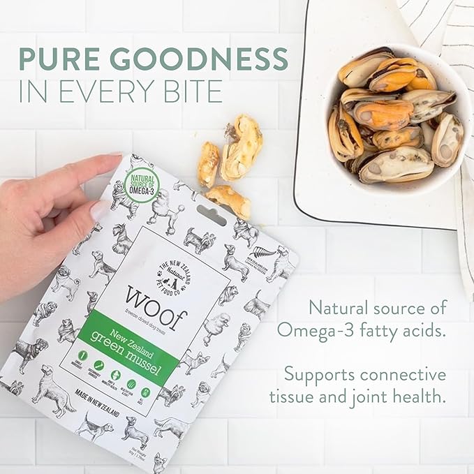 - Natural Superfoods - New Zealand Green Mussels are High in Omega-3 fatty acids which support immunity as well as a healthy skin and coat. Also a natural source of glucosamine and chondroitin sulphate, which support connective tissue and joint health.