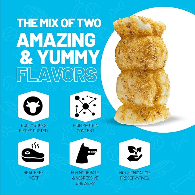 - HIGH PROTEIN LOW IN FAT: Each bully dusted cheek roll is packed with real bully sticks shavings double cut extra thick beef cheek dog treats.