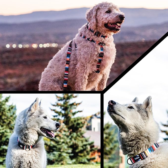 - Stylish and Functional: The welded steel D-ring and sturdy nylon buckles ensure a secure attachment point for your leash, giving you the confidence to control even the most powerful dogs during walks, training, or outdoor play. UV and stain-resistant materials ensure your gear stays looking sharp, rain or shine, so you can trust it to perform in any weather conditions while keeping your dog looking stylish on every adventure.
