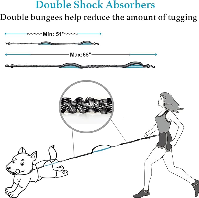 - Strong dual bungees construction: benefit from a dual spring build that'll absorb all jerks and lunges from dogs up to 150lb; reduce back Strain and the risk of getting Hurt, dog Training leash