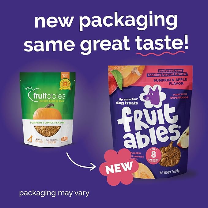 Fruitables Healthy Dog Treats Pumpkin & Apple | Made with Pumpkin for Dogs | Low Calorie Treats for Dogs | 12 Ounces, White