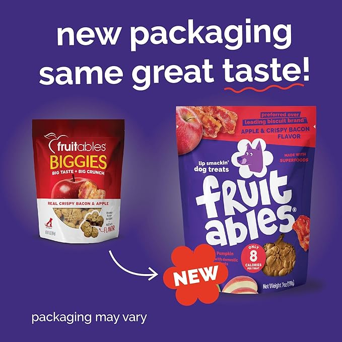 Fruitables Baked Dog Treats, Healthy Pumpkin Treat for Dogs, Low Calorie & Delicious, Free of Wheat, Corn and Soy, Made in the USA, Apple and Crispy Bacon Flavor, 12oz