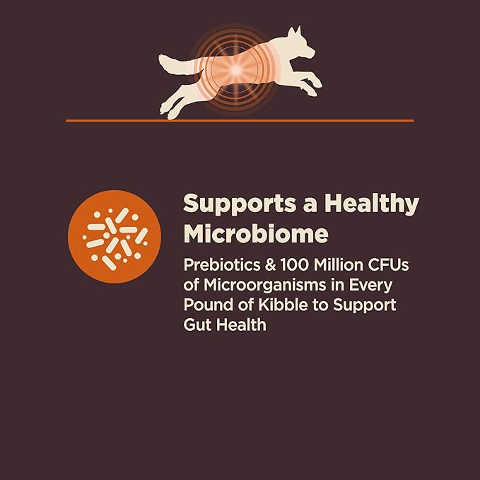- SUPPORTS HEALTHY SKIN AND COAT: Keeping the microbiome in a healthy balance helps protect against excessive inflammation or itchy skin. The inclusion of protein and omega fatty acids in the kibble ensure your dog’s coat stays lustrous and soft.