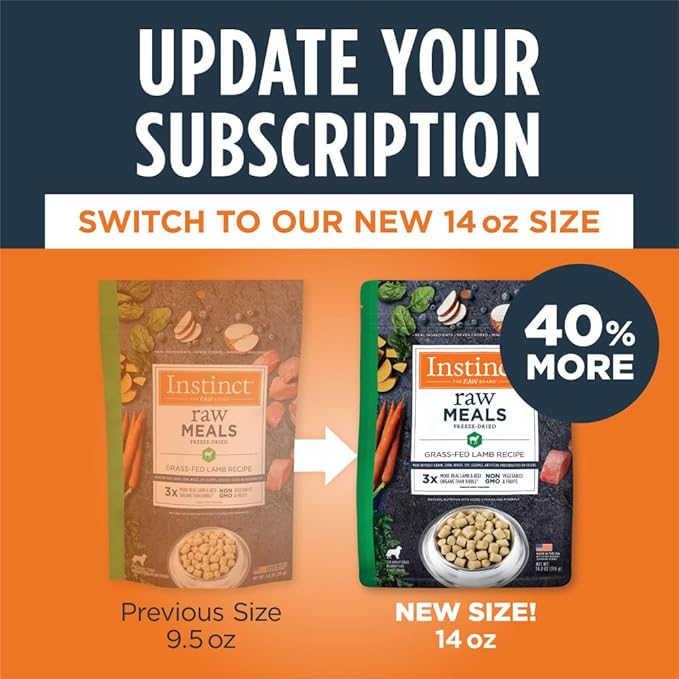 Instinct Freeze Dried Raw Meals, Natural Dry Dog Food, Grain Free - Grass Fed Lamb, 9 oz. Bag
