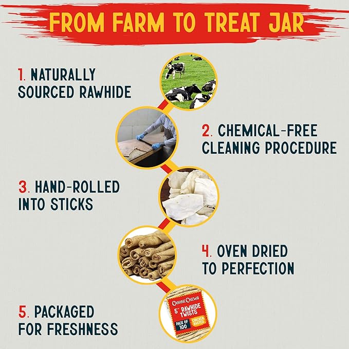 - SOURCED WITH LOVE - After 25 years, our family-owned manufacturer prides itself in continuing to hand twist each of these dog rawhide treats while sourcing the highest quality beef to produce our extensive line of beef hide dog chews