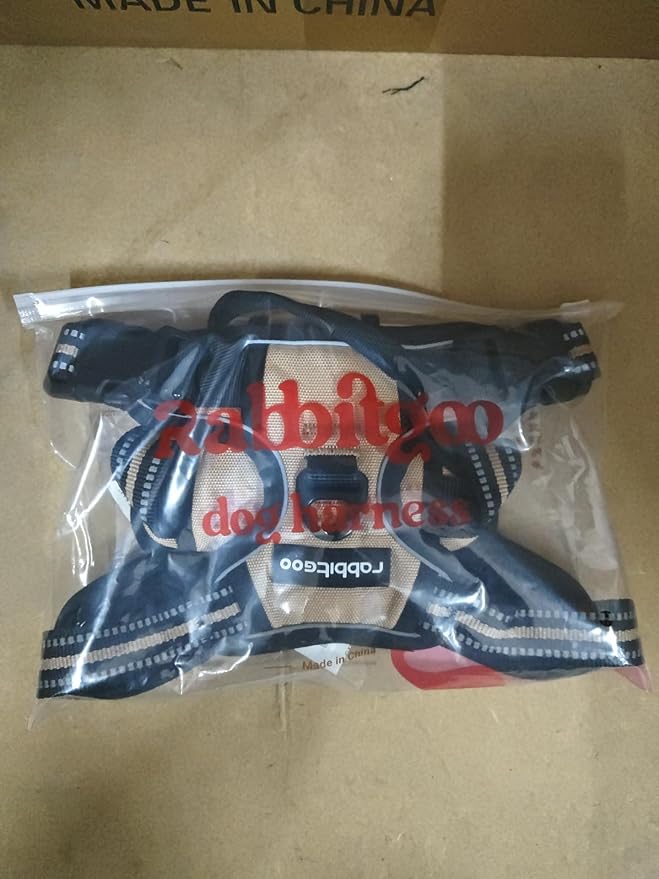 rabbitgoo Dog Harness No Pull with 2 Leash Clips, Adjustable Soft Padded, Reflective Oxford No Choke Pet Vest with Easy Control Handle for Large Dogs, Beige, XL