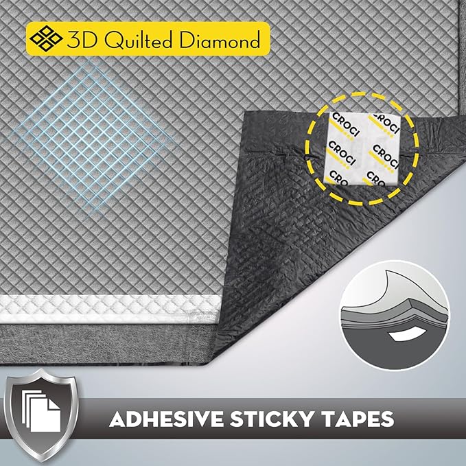 CROCI Charcoal Puppy Pads with Adhesive Tabs, 28x34in Extra Large Pee Pads for Dogs, Odor-Control Super Absorbent Quick-Dry Leak-Proof, Disposable (40 Counts)