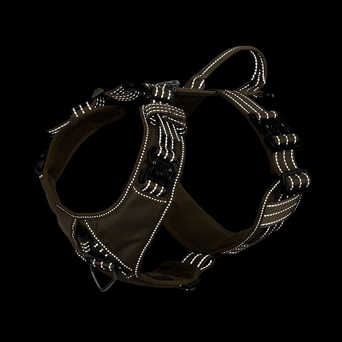 ICEFANG Dog Strap Harness with 4 x Metal Buckles,for Large Sized Dog,K9 Vest,Y-Shape Chest,Adjustable Pet Harness,No-Pull Front Leash Clip (Large (Pack of 1), Brown)