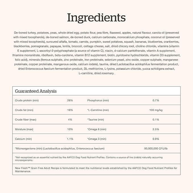 Now Fresh Grain-Free, Dry Dog Food, Real Meat and Fish, Turkey, Salmon and Duck Adult Recipe, All Breed Size, 22 lb Bag