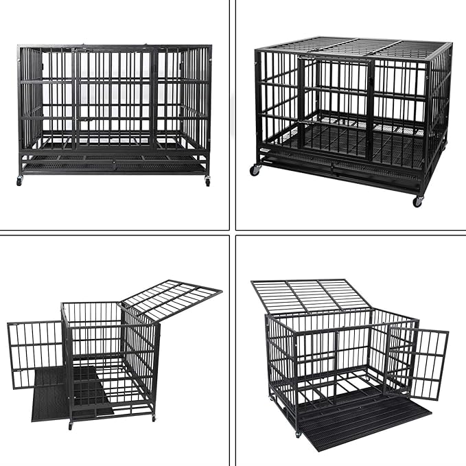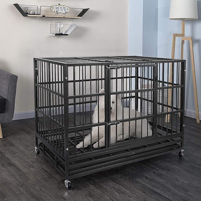 - Four 360 degrees rolling casters allow you to easily move the kennel around your home,Two of the wheels can be locked to keep it firmly in place. Large dog kennel double upgrade bolt locks design for anxiety dog, keep dog in contain, avoid damage or injury. The dog crates double door design is not only convenient for dog in and out but also good for you to interact and feed with your dog.