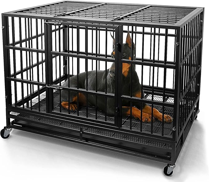 - Upgraded 20-gauge steel and reinforced 1/2 inch diameter steel tubes. Much stronger than fine wire cages. This is a very sturdy large dog cage, even for strong, powerful and aggressive dogs.