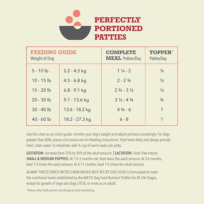 ACANA Grain-Free High Protein Freeze Dried Dog Food & Topper Ranch-Raised Beef Recipe Patties 14oz Bag
