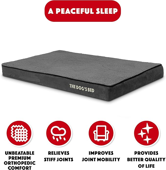The Dog’s Bed Orthopedic Memory Foam Dog Bed, XL Grey Plush, Pain Relief for Arthritis, Hip & Elbow Dysplasia, Post Surgery, Lameness, Supportive, Calming, Waterproof Washable Cover