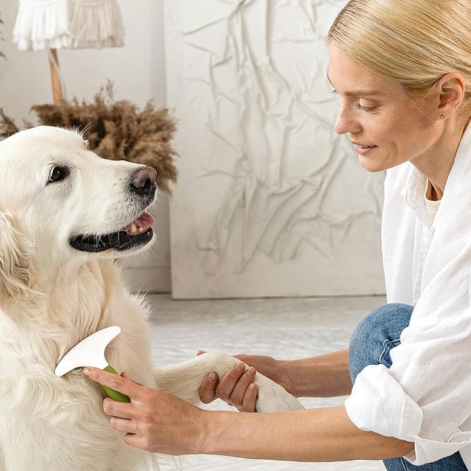 - Gently breaks up matted fur: Equipped with evenly-spaced rounded non-scratch teeth made from solid stainless steel, the dog grooming comb gently breaks up knots & fur matting to leave your pet hair matte-free.