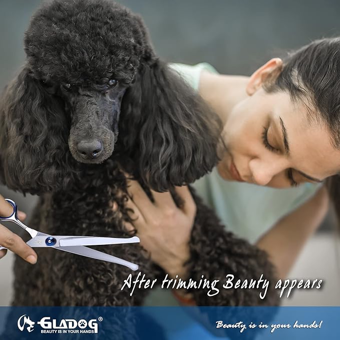 Dog Grooming Scissors Kit with Safety Round Tips, GLADOG Professional 6 in 1 Grooming Scissors for Dogs, Sharp and Heavy-duty Dog Grooming Shears for Dogs Cats Pets