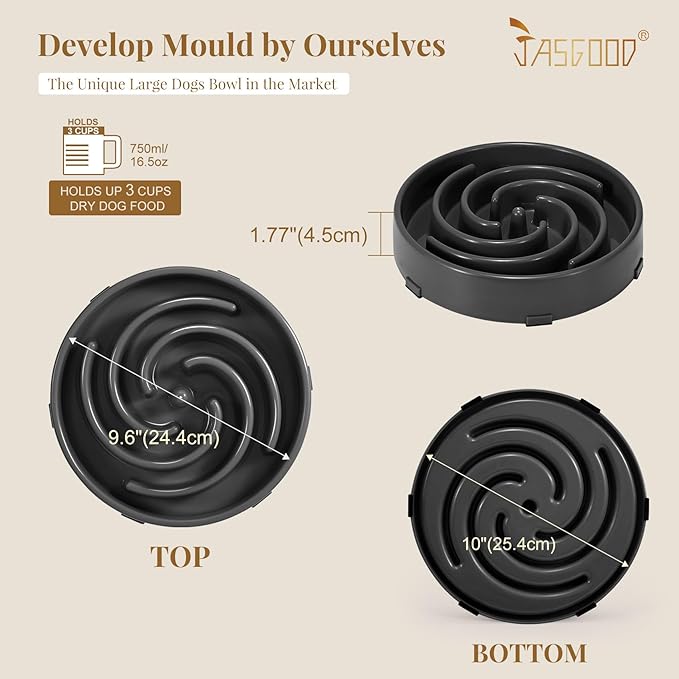 JASGOOD Slow Feeder Bowl for Large Dogs, Anti-Gulping, Prevents Bloat & Choking