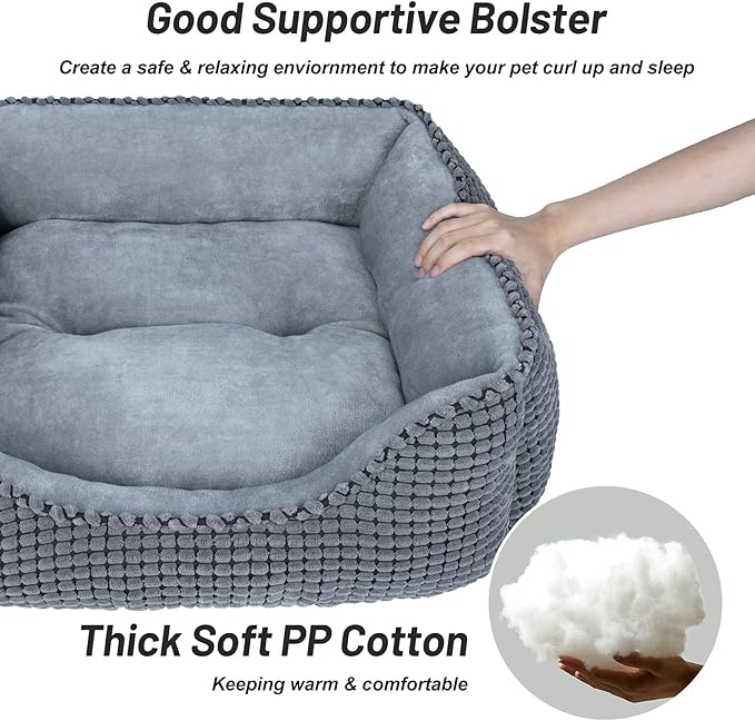 - Raised Rim Design: supportive raised sides of the rectangular dog bed create a safe & relaxing enviornment to make your dog and cat curl up, have fun, provide head and neck have a good support.