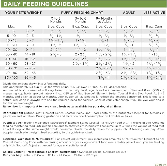 - As a member of our grain inclusive series, NutriSource Element Series Coastal Plains Dry Dog Food is formulated to meet AAFCO guidelines for all lifestages