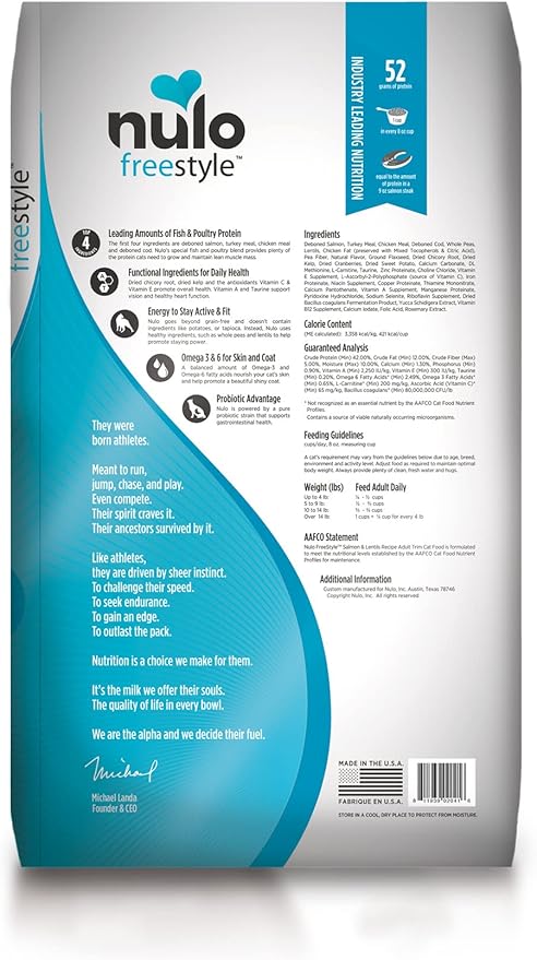Nulo Freestyle High Protein Trim Cat Food, Salmon & Lentils Recipe - Natural Grain-Free Dry Cat Food for Weight Management with l-Carnitine, Natural Fiber, & Probiotics, 2 lb Bag