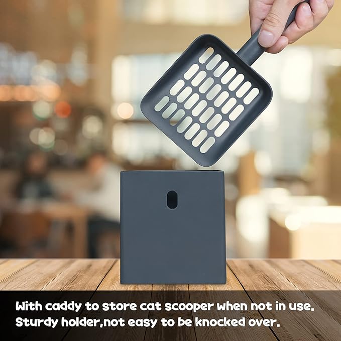 - [With holder to store cat litter scooper]: Litter scooper with holder, it won't be needed to be leaned against the wall or sit on top of the litter box. No longer worrying about the used cat pooper scooper being seen by guests.