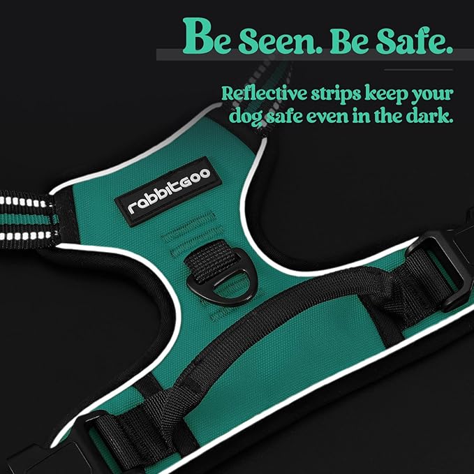 rabbitgoo Dog Harness No Pull with 2 Leash Clips, Adjustable Soft Padded, Reflective Oxford No Choke Pet Vest with Easy Control Handle for Small Dogs, Turquoise, S