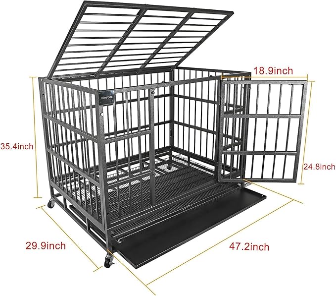 Confote 48" Heavy Dog Duty Cage Metal Indestructible Dog Kennels Crate for Large Dogs with Double Doors & Lockable Wheels
