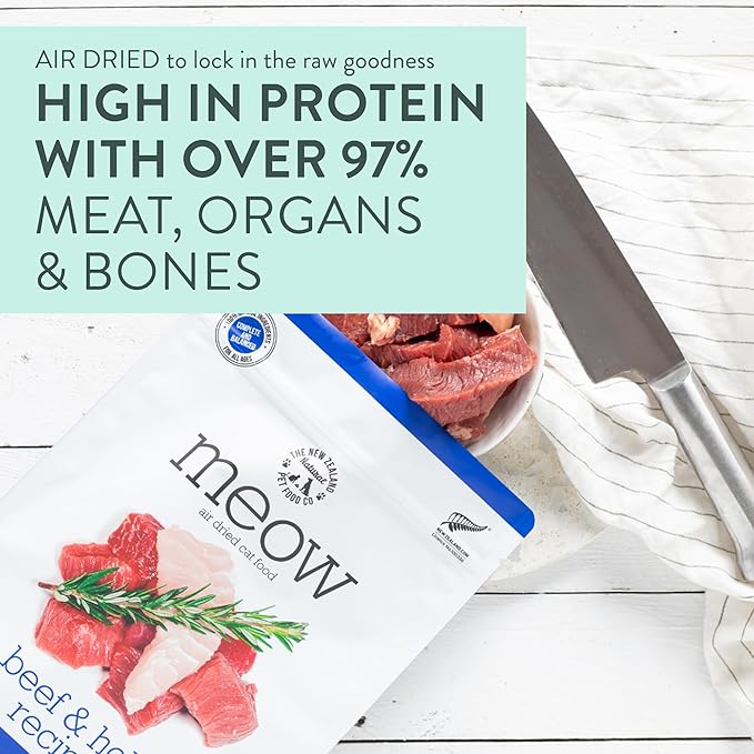 The New Zealand Natural Pet Food Co Meow Air Dried Cat Food - Beef & Hoki Recipe,High Protein Dry Cat Food, Training Treats, Meals & Toppers,3.5oz