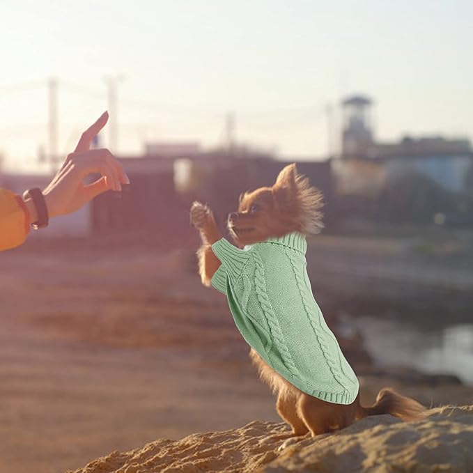 Queenmore Small Dog Pullover Sweater, Cold Weather Cable Knitwear, Classic Turtleneck Thick Warm Clothes for Chihuahua, Bulldog, Dachshund, Pug, Yorkie (Green, X-Large)