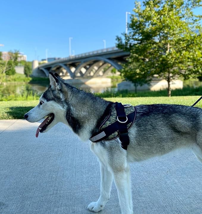 ShawnCo Essential Dog Harness, No-Pull Pet Vest with 3 Leash Clips, No Choke, Reflective, Adjustable and Padded, for Easy Walking and Training for Small, Medium and Large Dogs (Military Camo, XL)