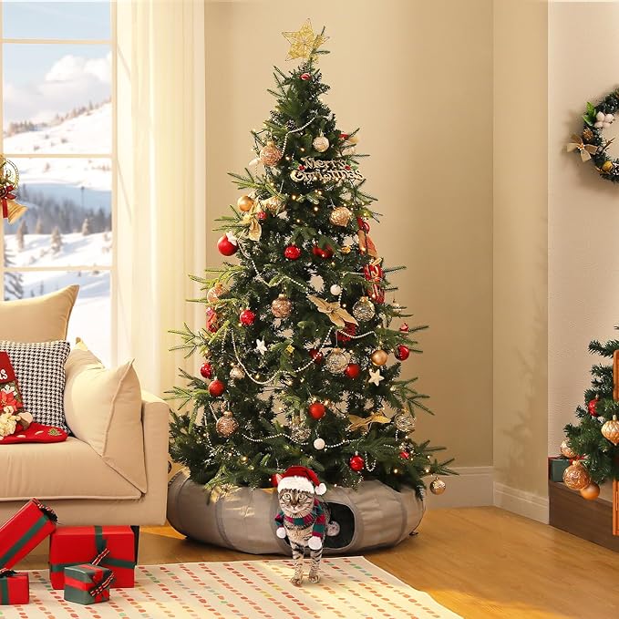 - Extra Bonus of Fun: It features an integrated peep hole that allows pets to see out and view the outdoors,making it an awesome location to hide and stalk from. Besides, the play tunnel equipped hanging ball at the entrance add more way to have fun that brings hours and hours exercise and self amusement as bating and swatting.