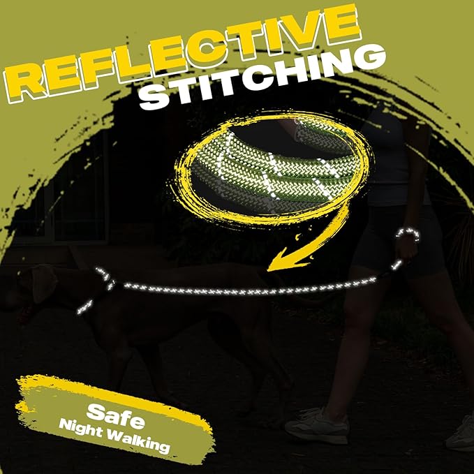 - 【Reflective for Night Safety】- The reflective straps on the entire rope leash ensures great visibility and security during night walk or jogging.