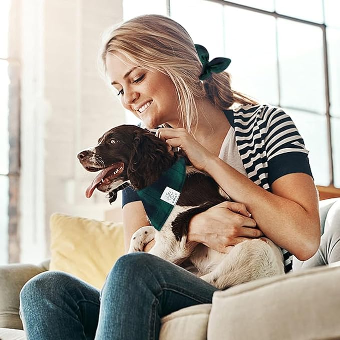 - Matching Bandana and Scrunchie Set - It’s full of love when your pets is wearing the buffalo dog bandana boy and you are wearing the bow scrunchies. When traveling, sleeping, taking photos or daily walking, adorable St Patricks Day dog bandana and plaid scrunchie is a pretty accessories. The scrunchie can be worn as a wrist accessory and hold your hair. Beautiful dog bibs and bow scrunchie with green tartan pattern, it’s nice photo props for holiday.