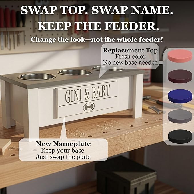 - 💦 Pet-Safe, Water Resistant Design 💦 The top surface and internal storage space of this custom dog bowl stand are treated with pet-safe, water-resistant polyurethane.