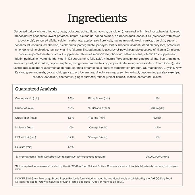 Now Fresh Grain-Free, Dry Dog Food, Real Meat and Fish, Turkey, Salmon and Duck Large Breed Puppy Recipe, 12 lb Bag
