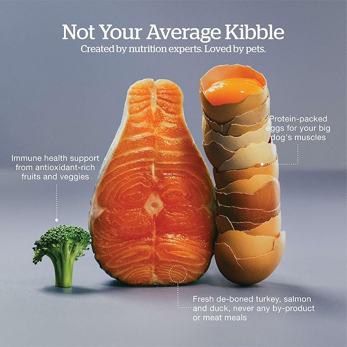 - 1st ingredient is Fresh Turkey: Made with fresh, de-boned turkey, salmon and duck, providing highly digestible protein to support healthy muscle development in large breed pups