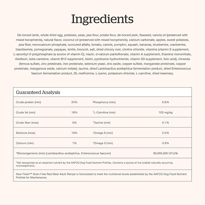 Now Fresh Grain-Free Premium Dry Dog Food with Lamb & Pork, Healthy Kibble for Adults Made with Real Red Meat, Chicken-Free Recipe, Enhanced with Pumpkin & Probiotics for Good Digestion, 22 lb Bag