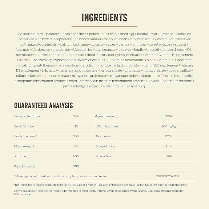 Now Fresh Grain-Free, Dry Cat Food, Turkey, Salmon and Duck Kibble, Real Meat and Fish Senior Recipe, 3 lb Bag