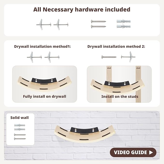 - Easy to install - Our cat wall shelf package included instructions, screws, drywall anchors, etc. We Simplify the installation process. It only takes 5 minutes to float the cat rack in midair!