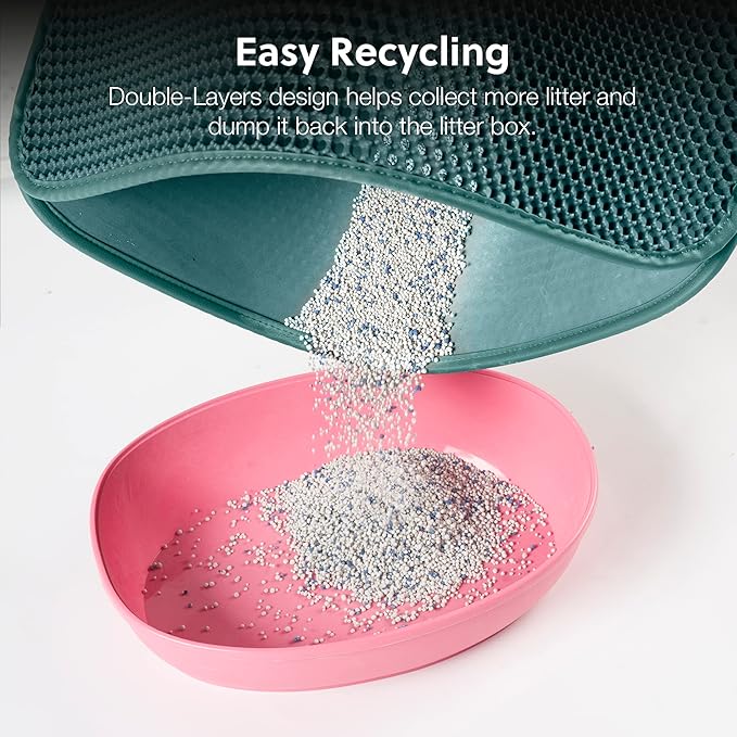 - [FUNCTIONS]: Brilliantly traps cat litter from cat paws and litter boxes with its fully tested double layered design to help trap litter in between and prevent the scattering of kitty litter.