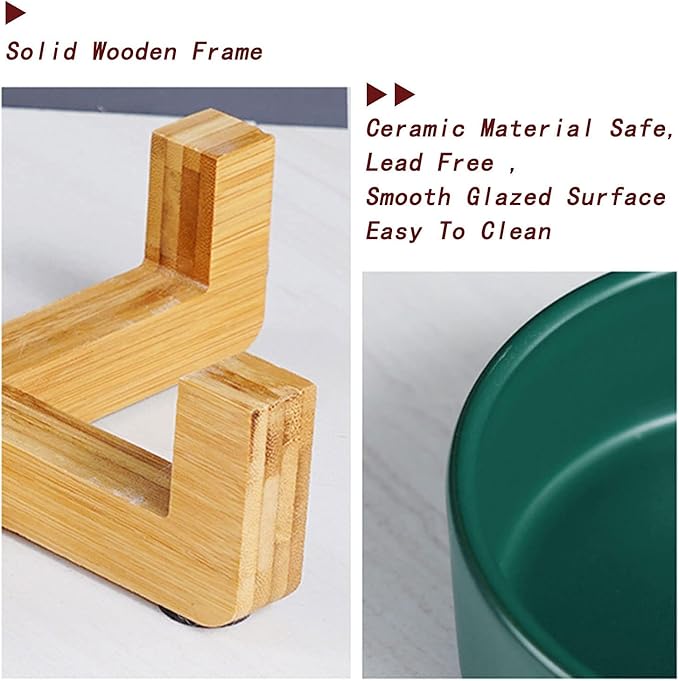 - Double Bowl Design:One dog bowl for food and one for water, Each ceramic cat bowl has a Unique wooden stand, raising the dishes closer to your pet for more comfortable eating