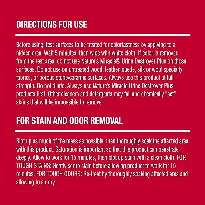 - FOR CAT URINE MESSES: Begins to break down and remove stains immediately on contact.