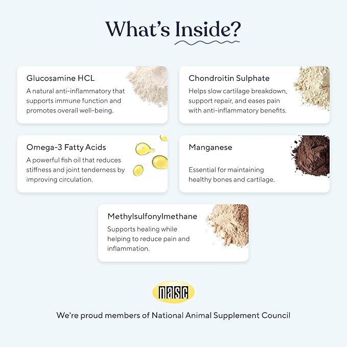 - SUPPORT YOUR DOGS JOINT HEALTH: Promote improved mobility and comfort with our powerful glucosamine formula for dogs. Designed to support active and comfortable living, this dog joint supplement is ideal for experiencing joint stiffness or reduced mobility.