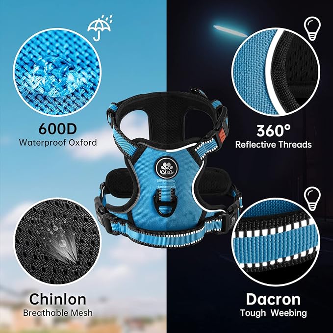 NESTROAD No Pull Dog Harness,Adjustable Oxford Dog Vest Harness with Leash,Reflective No-Choke Pet Harness with Easy Control Soft Handle for Small Medium Dogs(Medium,Blue)