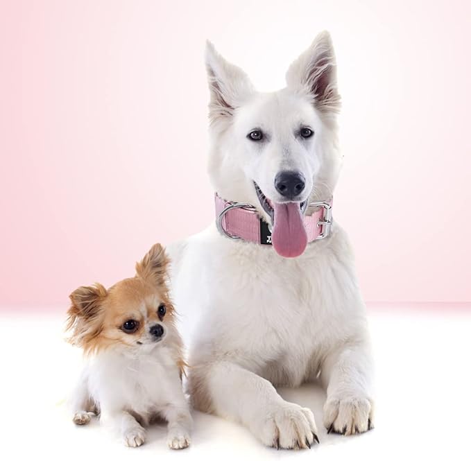 TSPRO Tactical Dog Collar 1.5 Inch Wide Thick Dog Collars with Heavy Duty Metal Buckle, Durable, Strong, Adjustable for Medium to Large Dogs (Pink M)
