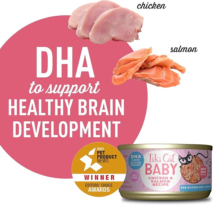 Tiki Cat Baby, Chicken & Salmon, High-Protein and 100% Non-GMO Ingredients, Wet Cat Food for Kittens 8 Weeks+, 2.4 oz. Can (12 Count)