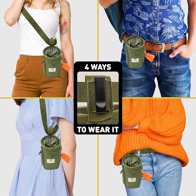 - Convenient Dog Treat Holder with 4 Ways to Wear | Designed for men, women and kids, this dog treat bag with adjustable strap and belt clip can be worn crossbody, over shoulder, around the waist, or clipped to your belt | Treat bag for dog training with durable belt ensure the pouch fits firmly and securely | Functions as a dog waist pack, keeping your hands free while carrying dog accessories