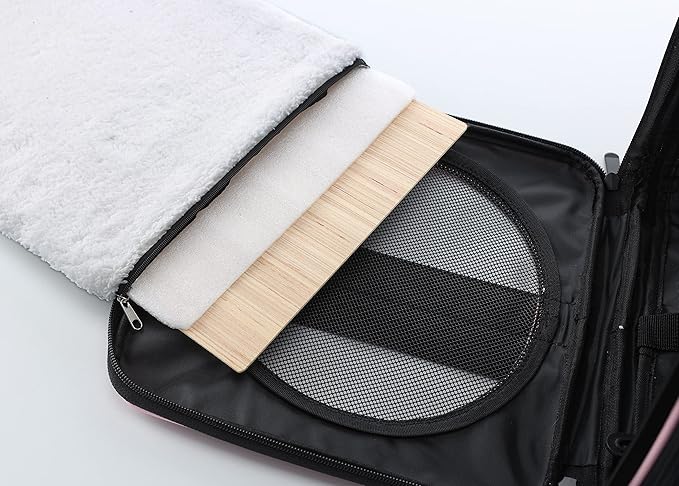 - A removable base insert, which creates a solid surface for your pet to stand on, along with a removable & hand washable cozy fleece pet bed, which offers a cozy sleeping space for your traveling pet