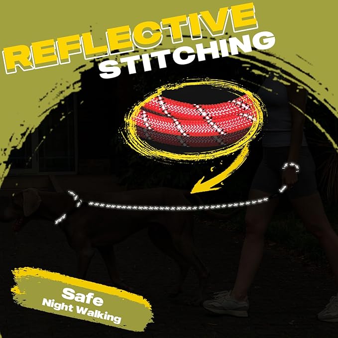 - 【Reflective for Night Safety】- The reflective straps on the entire rope leash ensures great visibility and security during night walk or jogging.