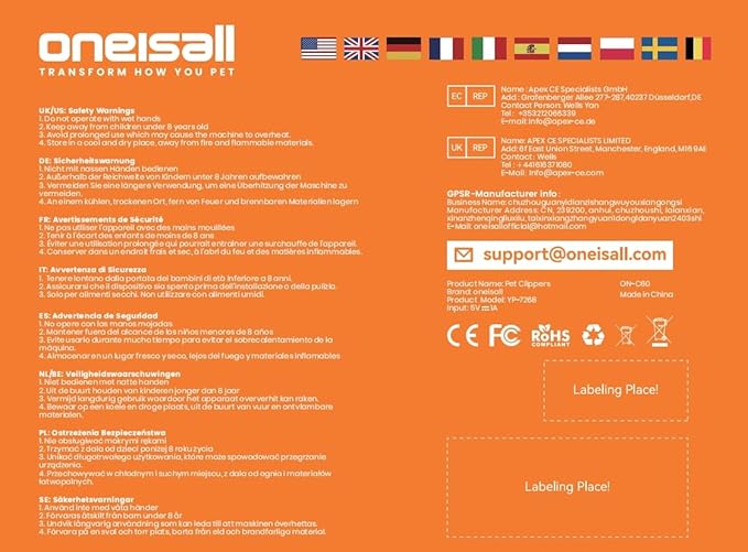 - What You Get: oneisall 7268 cat clipper, 4 guide guards (3mm/ 6mm/ 9mm/ 12mm), cleaning brush, comb, scissor, usb charger. Includes everything you need to trim your petโs hair
